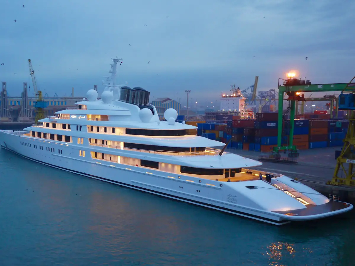The yacht Azzam measures up to 590 feet in length—larger than many commercial vessels—and is owned by Sheikh Khalifa bin Zayed Al Nahyan, the current Prime Minister of the UAE. The French shipbuilder Lürssen spent up to four years completing Azzam, as the vessel features as many as 50 ultra-luxurious private suites.