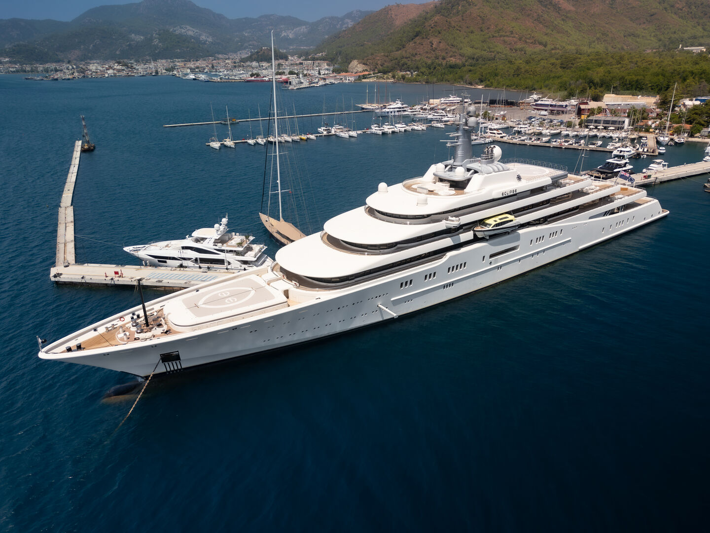 Russian billionaire Roman Abramovich purchased this 536-foot-long yacht in 2010, when it held the record as the largest yacht in the world. Eclipse features two helipads, a dance floor, a cinema, a hair salon, and a restaurant.