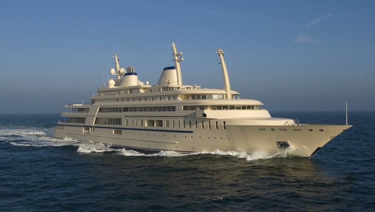 The owner of Al Said is Sultan Qaboos bin Said (Oman), the billionaire ruler of the Sultanate of Oman. The yacht has a length of 155 meters and can accommodate 70 guests along with a crew of 154. It features a helipad, elevators, and a concert hall that can seat 50 people.