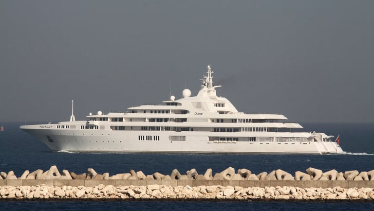 With a length of 162 meters, Dubai is one of the largest yachts in the world. It was owned by Prince Jefri Bolkiah of Brunei for ten years before being sold to a Dubai businessman, Sheikh Mohammed Rashid Al Maktoum.