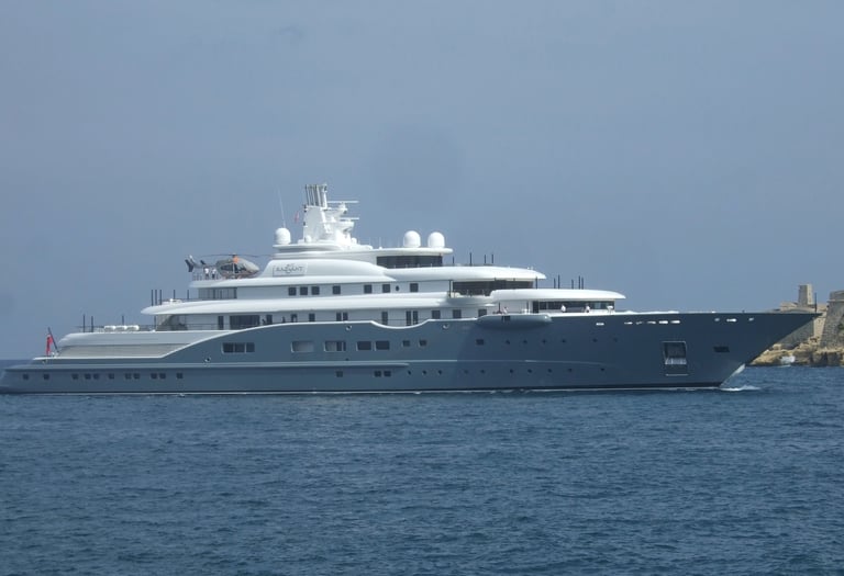 The yacht Al Mirqab is currently owned by Hamad bin Jassim bin Jaber bin Muhammad Al Thani, former Prime Minister of Qatar. The 133-meter-long vessel was completed in 2008 and can accommodate 24 guests in 12 luxury cabins. Al Mirqab is also equipped with a cinema, a swimming pool, a helipad, and accommodation for a crew of 55.